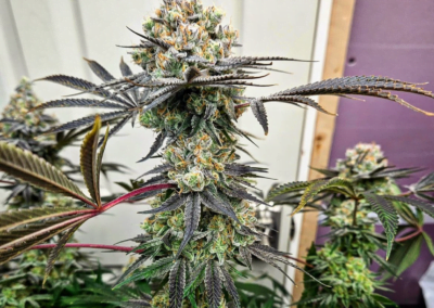 This is a remake to amply some of the best characteristics of this legendary cut. Known for the lemon-lime-slushee flavor profile, Chernobyl grows with a powerful terpene profile high in limonene. The bag appeal on this strain is immediately apparent, as an overwhelmingly fruity and citrus smell will match dense, white-trichome laden calyxes and leaves. This strain will glisten when approaching peak ripeness. Nutrients need to be moderated and plants will require trellising to support the more delicate branches. Plants will jump in height during the flip to flower, sometimes 80-100% of the vegetative height. As a result, proper planning for vertical space, clearance, and light intensity will be needed.