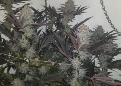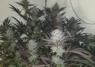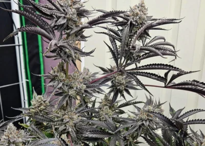 Vigorous, tight internode spacing, bushy. This finished plant emanates aromas reminiscent of dessert and candied fruit; or even a sugar glaze. Colas develop quickly during flower and resin rails can develop in some phenotypes as early as week 4. Some plants will turn a darker color during flush, with purple, dark green, and almost black fades.