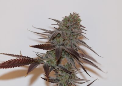 The aromas on this plant are unmatched. Zest, strawberry, citrus, cough syrup, grapes, and at times earthy profiles can be detected. Large, vertical colas that fill high quality flower from the Sour Strawberry mother, along with more lateral branching phenotypes representative of the Chernobyl parent. Tops will grow medium size and effective use of a light-footprint will be needed to maximize yield. Most plants are done growing by day 60, but ripeness and maturity will continue to develop if plants are taken longer. Some phenotypes remain green, others will retain a dark red and purple hue, especially when flushed properly towards the end of the growing period.