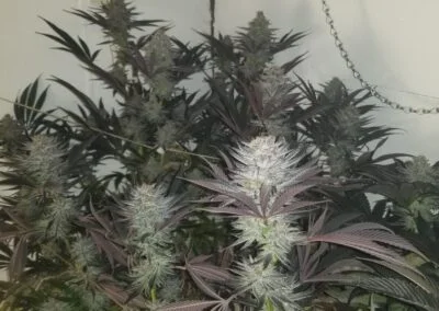 Moderate internode spacing. This plant grows equal parts laterally and vertically early in vegetative and flower. Colas will swell late and will need to be supported appropriately. Pine, lemon, lime, earth, and slight chem smells will emanate from various phenotypes. Some plants will turn very dark during the closing weeks.